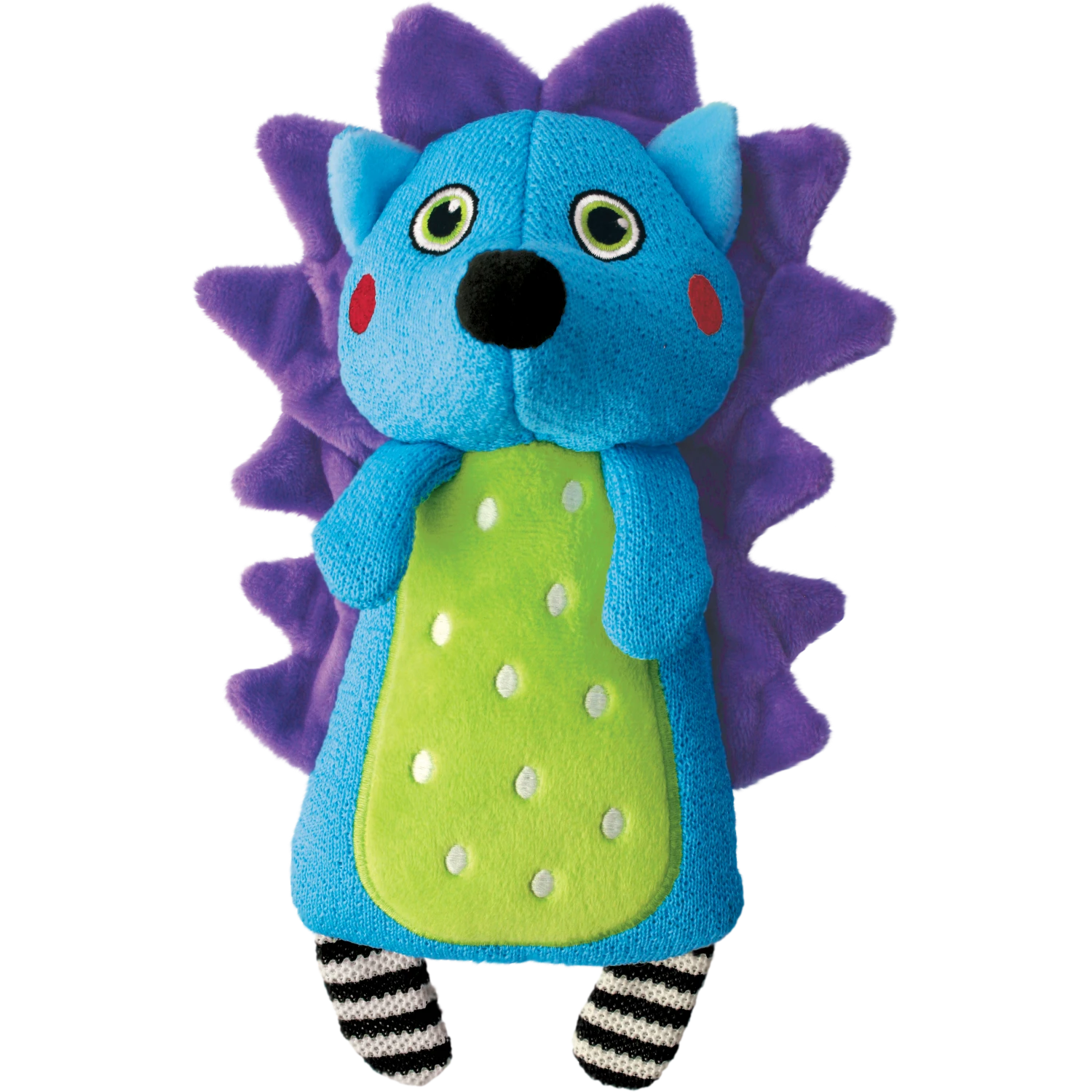 KONG Whoopz Hedgehog’s irresistibly spongy texture and long shape entice natural shaking instincts while rewarding natural chewing instincts. Two squeaker tones add to the engagement while a reinforced material helps extend playtime. The soft body is ideal for snuggling and indoor fetching fun.