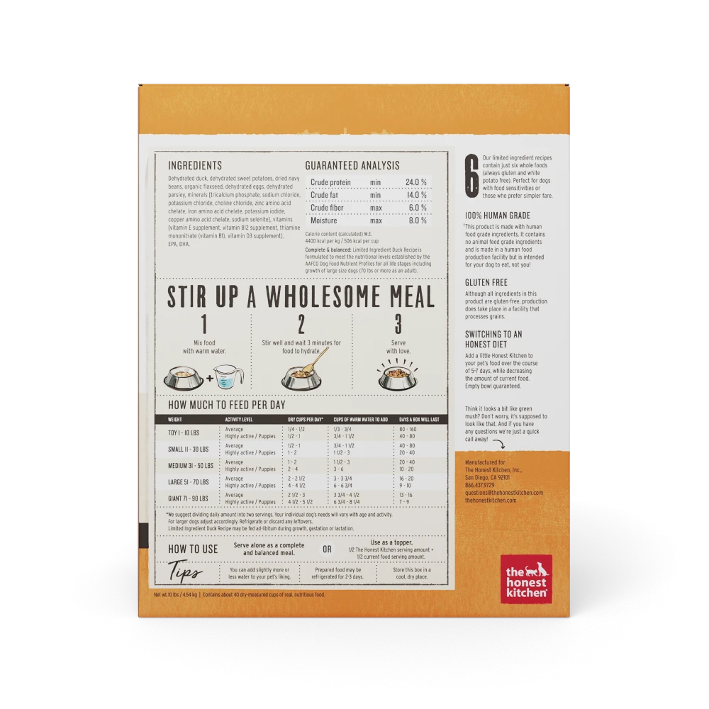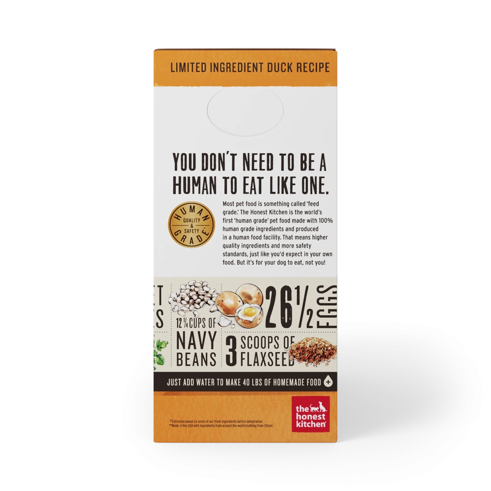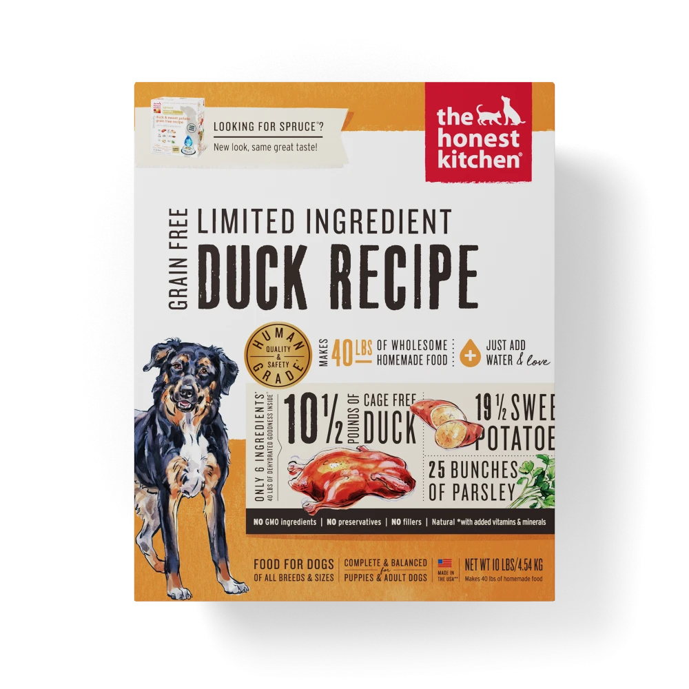 When your dog has sensitivities to ingredients in most bags, it’s time to start thinking inside the box. Delicious, cage-free duck is a unique protein for your pup’s touchy and unique tummy. This simple recipe is easy on the digestive tract and on the taste buds. Six grain-free ingredients unite to form a complete and balanced meal, but the limited number of ingredients make it gentle on pups who require a minimalist diet. Featuring only 100% human-grade ingredients you want, and 0% nothing you don’t.