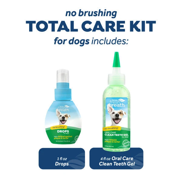 - Drops – Total Care Kit includes a bonus set of Fresh Breath Drops for Dogs. Simply add to water twice daily to give your dog fresh breath!