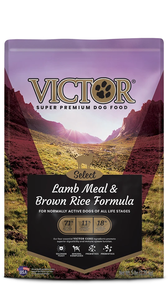 With premium-quality lamb meal as the primary protein source, VICTOR Lamb Meal & Brown Rice Formula is formulated to nutritionally support dogs with normal activity levels. It is easy to alternate SELECT formulas to offer your dog multiple flavors throughout the year. This formula is appropriate for large and small dogs at all life stages.